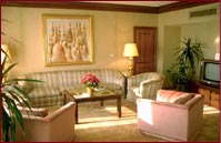 The Semiramis Intercontinental has 79 lavish and elegant Suites. All suites have separate living rooms with a sofa bed, a dining table, and a work desk. Suites are equipped with all the modern comforts and amenities including, individually Controlled Air Conditioning, color TV, mini-bar, direct dial phone, in room safe and Valet service. Bathrooms come with bathrobes, complimentary toiletries, mirror, hairdryers and a bathtub.